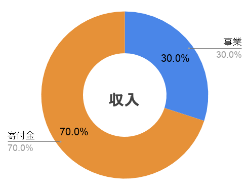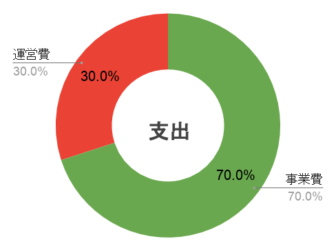 初年度の活動収支の目標イメージです。収入は皆さまからの寄付金で70%、フェアトレードなどの事業で30%となるように、また支出はミャンマーの教育支援などの事業費で70%、団体組織の運営費に30%となるよう活動していきます。